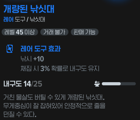 아 그리구. 낚시 계속 켜놓으면 내구도 달아요, 여분 준비해두세요